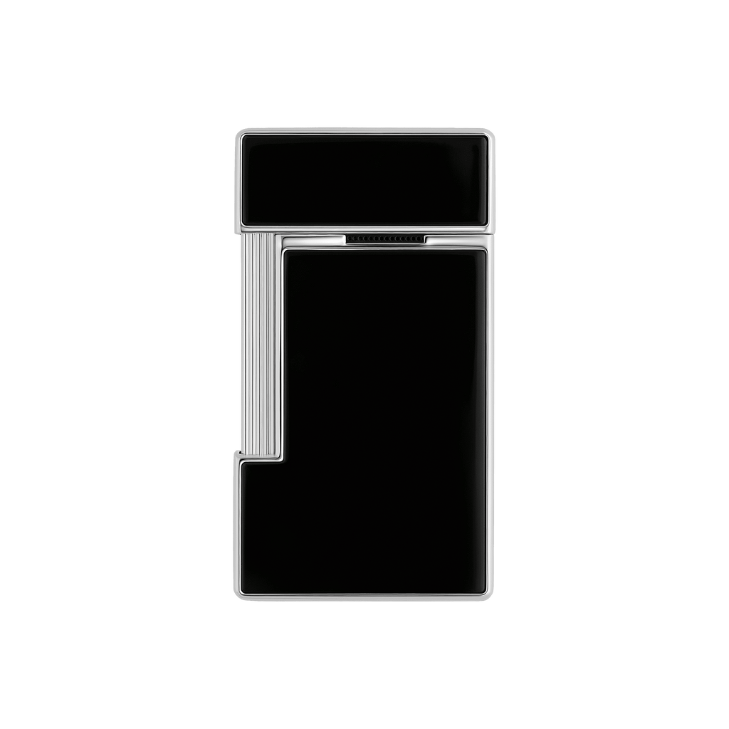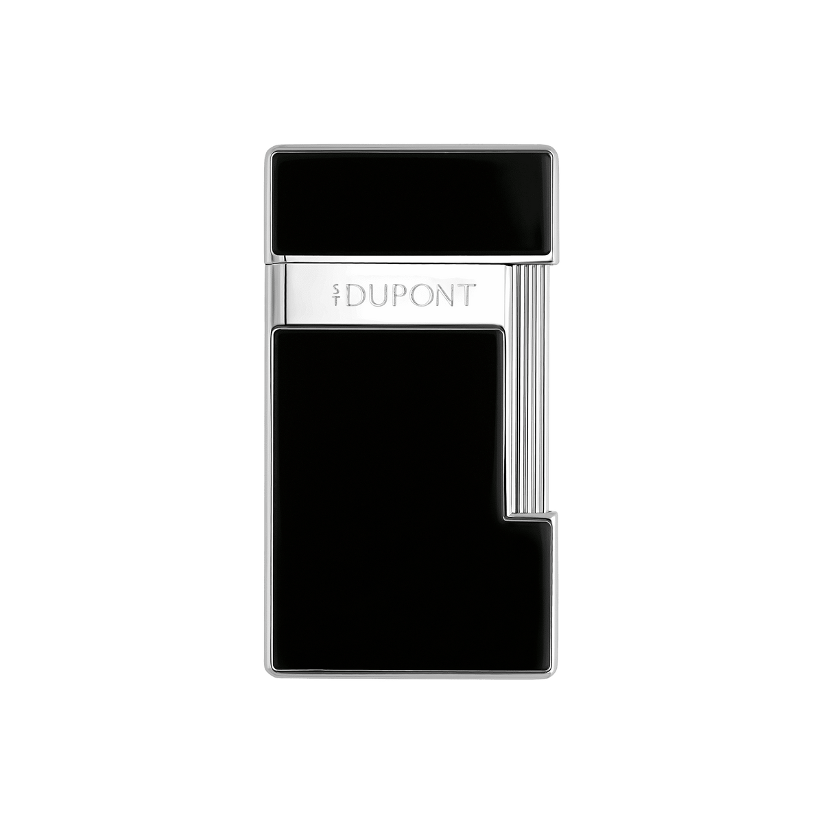 Das S.T. Dupont Slimmy Feuerzeug vereint die Eleganz einer schlanken Silhouette mit der Robustheit eines Metallkorpus, veredelt durch hochglänzenden Schwarzlack und polierte Chromakzente. Diese Kombination sorgt für einen modernen, grafischen Auftritt, der die Markenidentität von S.T. Dupont subtil unterstreicht.