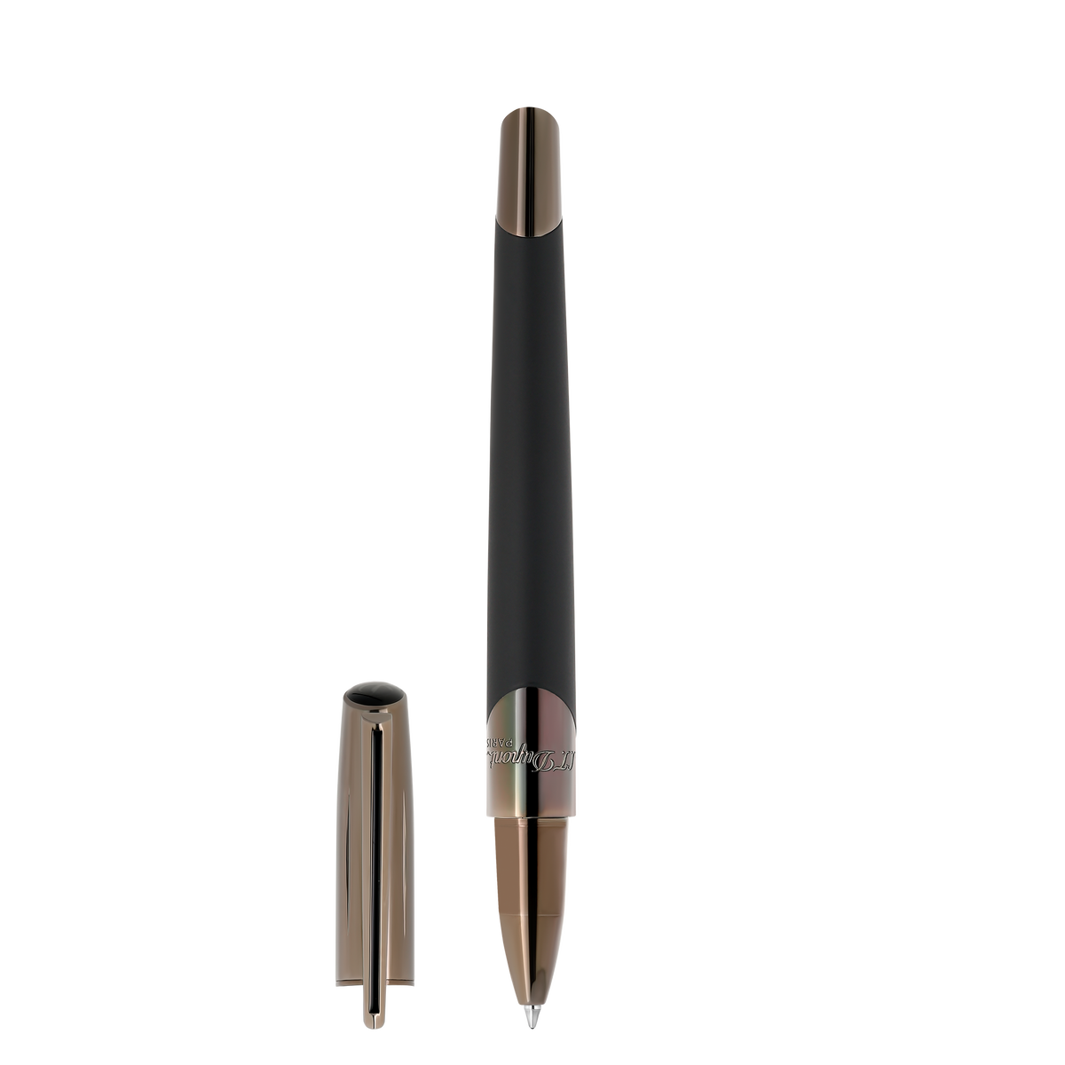Der S.T. Dupont Tintenroller in Gunmetal und Mattschwarz verkörpert die Essenz luxuriöser Schreibgeräte. Mit seinem hochwertigen Metallkorpus und der zweifarbigen Oberflächenveredelung bietet er eine moderne, technische Anmutung, die durch die kratzbeständige Gunmetal-Beschichtung verstärkt wird.