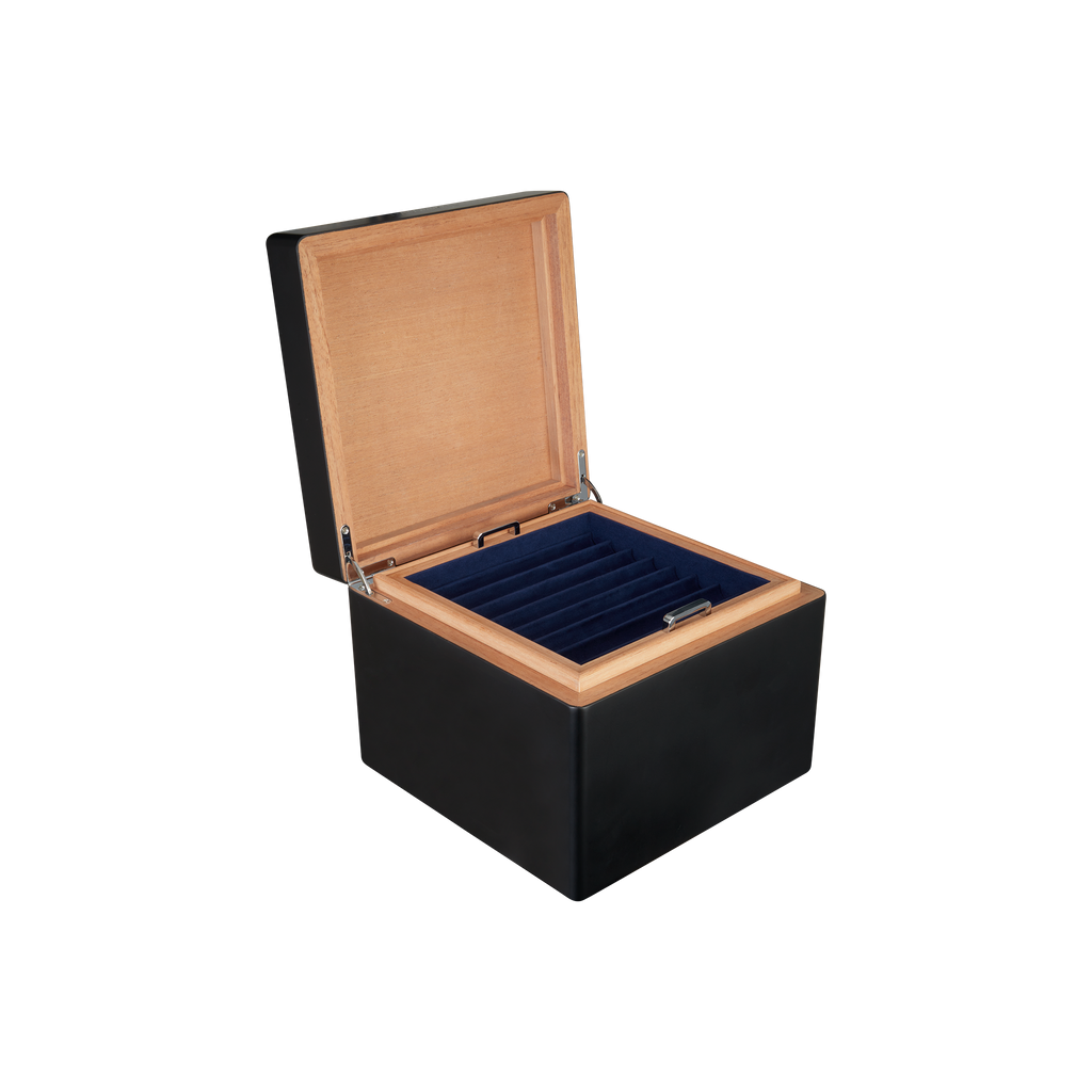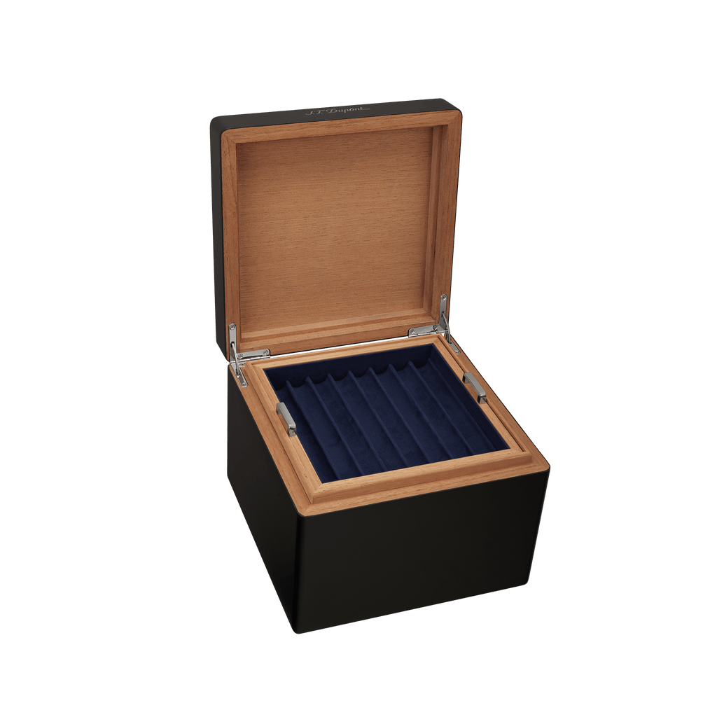 Der S.T. Dupont Würfel Schreibgeräte ist ein Meisterwerk der Organisation und Ästhetik, das sich nahtlos in die Welt der luxuriösen Schreibtisch-Accessoires einfügt. Mit seiner klaren, architektonischen Würfelform bietet er Platz für bis zu 24 Schreibgeräte und sorgt für eine geordnete, vertikale Präsentation.