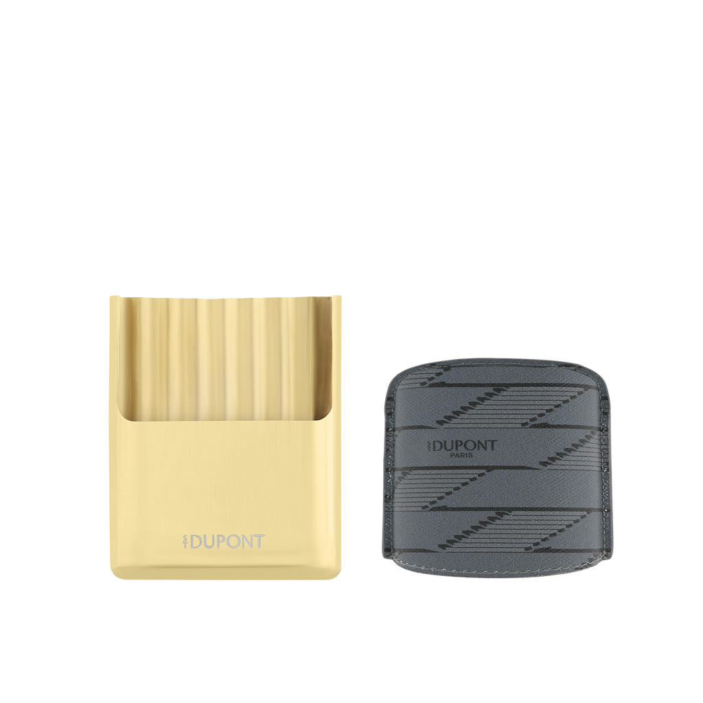 Das S.T. Dupont Zigarettenetui aus der 1872 Monogram Kollektion vereint klassische Pariser Luxus-Handwerkskunst mit einem modernen, alltagsfähigen Stil. Das charakteristische Monogramm in Grau verweist auf die lange Tradition der Maison und bietet eine zeitlose, luxuriöse Optik.