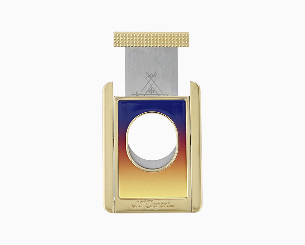 Der S.T. Dupont Zigarrenschneider aus der Montecristo Aurore Kollektion vereint französische Luxus-Handwerkskunst mit ikonischer Zigarrenästhetik. Die präzisionsgeschliffenen Edelstahlklingen garantieren einen sauberen, gratfreien Schnitt, während der federunterstützte Mechanismus für ein gleichmäßiges Öffnen und Schließen sorgt.