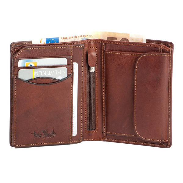 Tony Perotti Geldbörse - Diese Geldbörse aus dem Hause Tony Perotti überzeugt mit seinem unverkennbaren und sehr strapazierfähigem Leder. Das feine, pflanzlich gegerbte Leder wird mit der Zeit etwas weicher und vermittelt ein warmes, entspanntes Gefühl. Im Laufe der Zeit wird das Leder etwas dunkler und erhält sein typisches Aussehen. Diese hochwertige Brieftasche kommt zudem sehr gut mit Kratzern und Verschleisserscheinungen klar, denn der rein pflanzliche Prozess des Gerbens bringt genau diese Vorteile mit sich. Ein kompakter Geldbeutel, der dennoch genug Stauraum bietet, um die wichtigsten Karten unterzubringen. Lassen Sie sich von dieser handgemachten und qualitativ unverkennbaren Geldbörse überzeugen.
