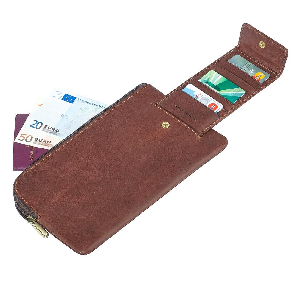 Tony Perotti Reisebrieftasche - Diese Reisebrieftasche aus dem Hause Tony Perotti überzeugt mit dem unverkennbaren und sehr strapazierfähigem Leder. Das feine, pflanzlich gegerbte Leder wird mit der Zeit etwas weicher und vermittelt ein warmes, entspanntes Gefühl. Im Laufe der Zeit wird das Leder etwas dunkler und erhält sein typisches Aussehen. Dieses hochwertige Etui für Ihre wichtigsten Karten und Dokumente kommt zudem sehr gut mit Kratzern und Verschleisserscheinungen klar, denn der rein pflanzliche Prozess des Gerbens bringt genau diese Vorteile mit sich. Die Reisebrieftasche bietet sicheren Stauraum für Ihre persönlichen Dokumente, Kreditkarten, Bargeld und sogar Ihr Smartphone. Sicher verschlossen durch einen sehr hochwertigen Reißverschluss ist diese Reisebrieftasche der ideale Begleiter für Ihre Reise. Lassen Sie sich von dieser handgemachten und qualitativ unverkennbaren Brieftasche überzeugen.
