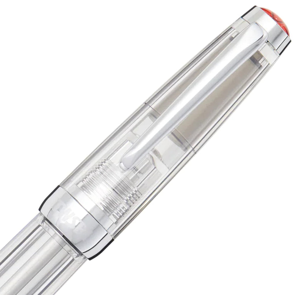 Der TWSBI VAC Mini Füller hat silberne Zierelemente und ist ein sogenannter Demonstrator - ein Füllhalter mit durchsichtigem Korpus.