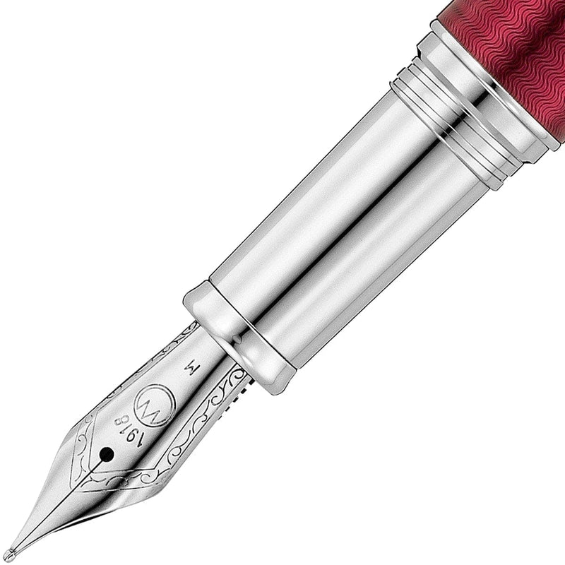 Der Waldmann Grandeur Füllhalter in rot hat platinierte Zierelemente und ein auffallendes Design.