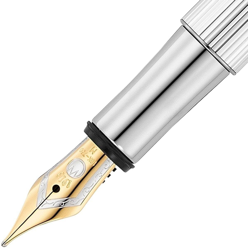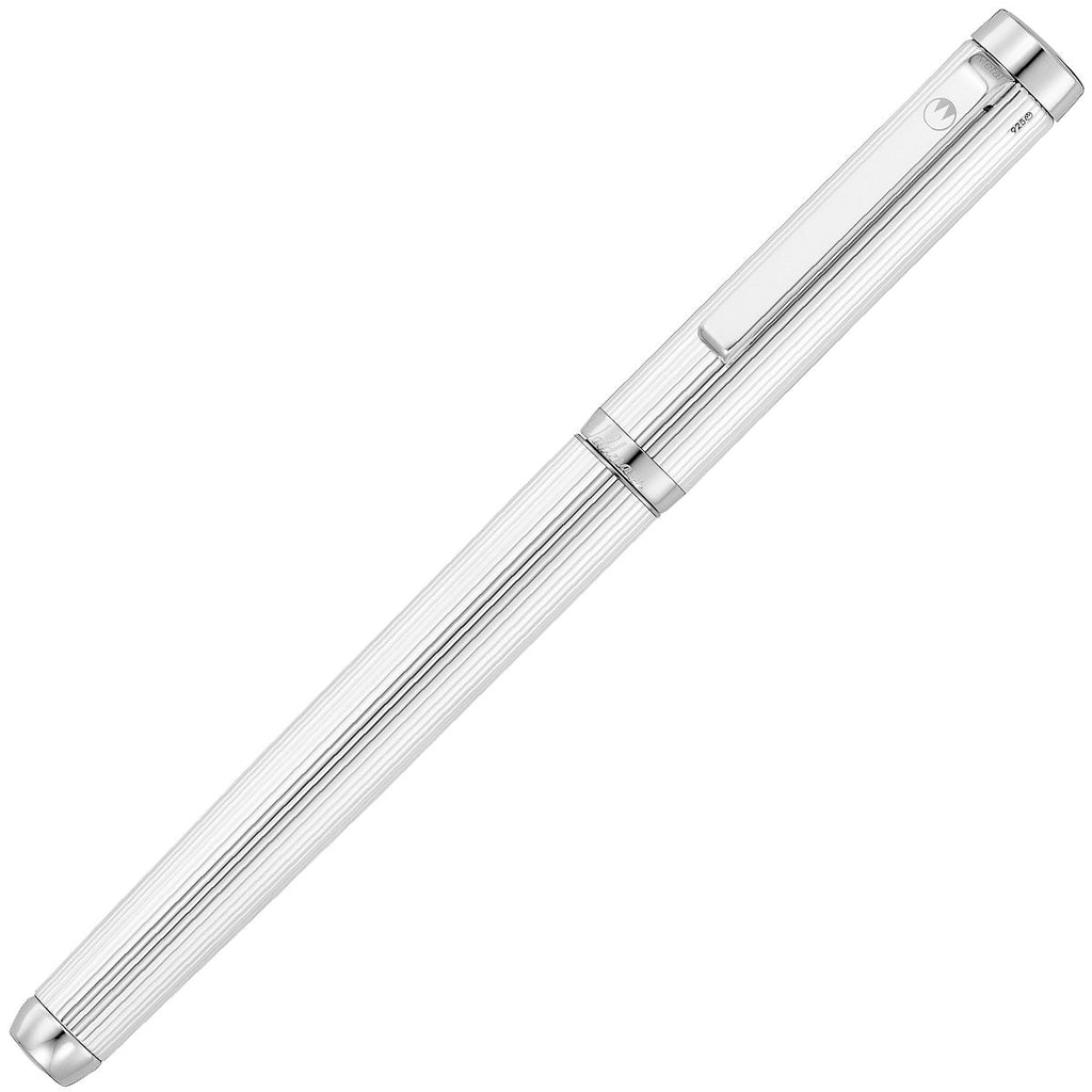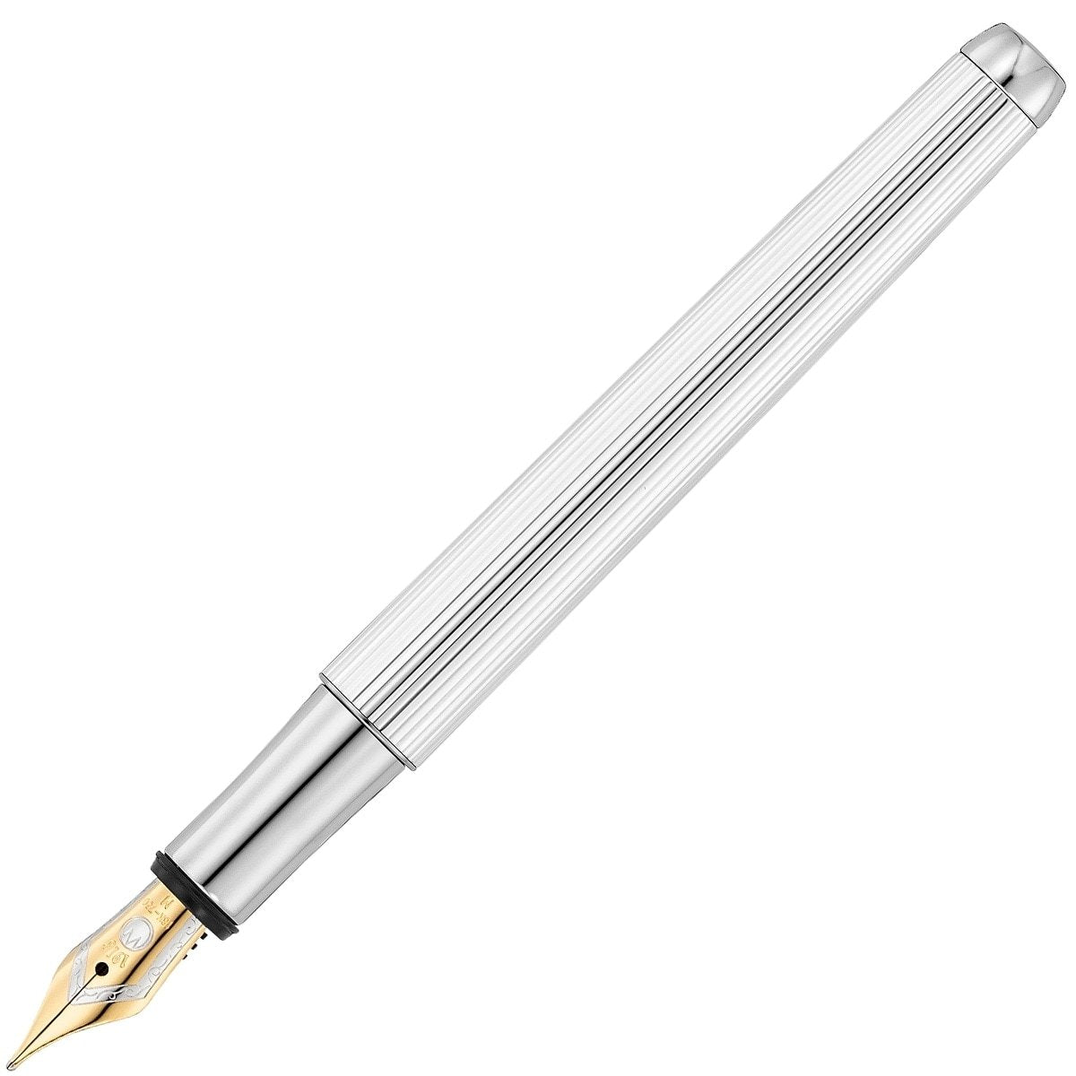 Der Waldmann Liberty Füller in silbern hat platinierte Zierelemente und ein modernes Design.