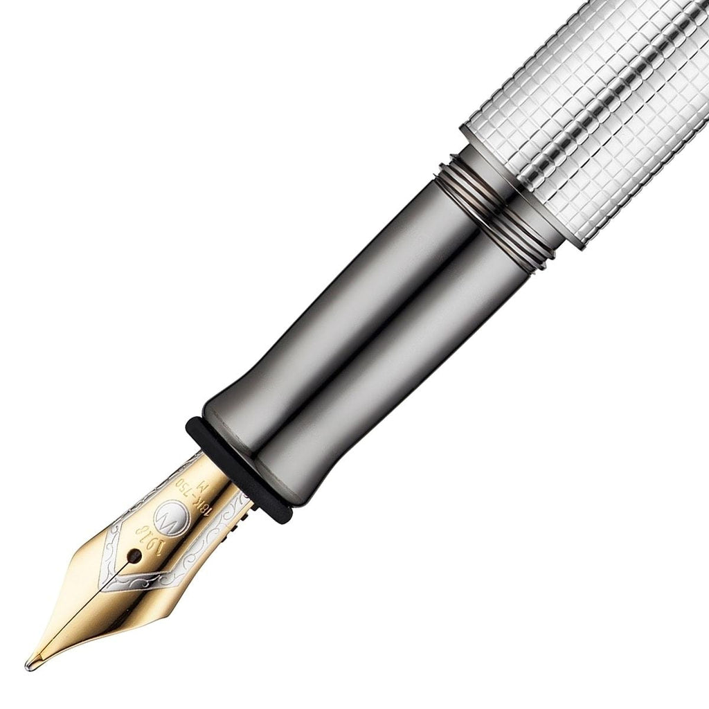 Der Waldmann Tango Füllfederhalter in silbern hat ruthenierte Zierelemente und ein Modern Classic Design.