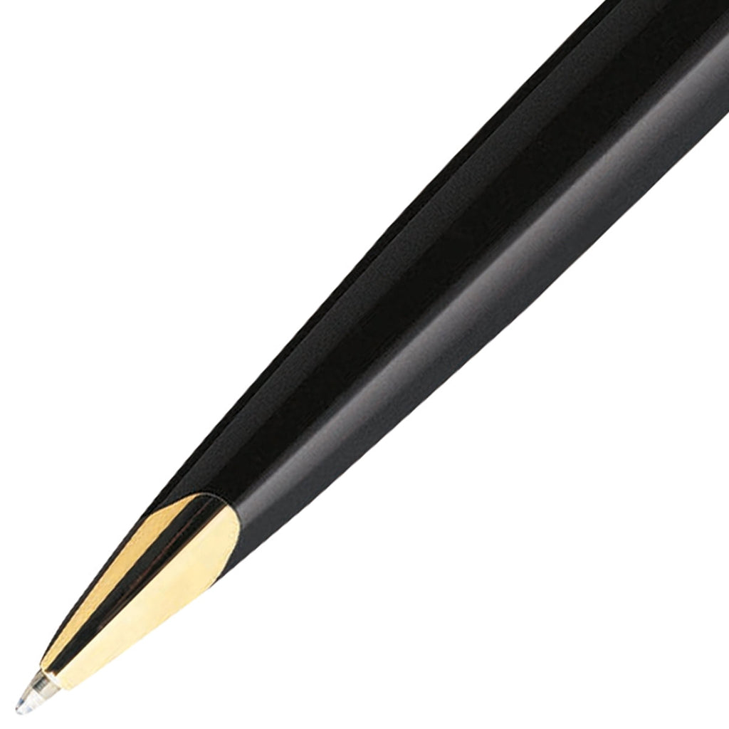 Die schwarze Farbe, goldene Zierelemente und ein immerwährendes Design sind Hauptmerkmale des Waterman Carène Kugelschreibers.