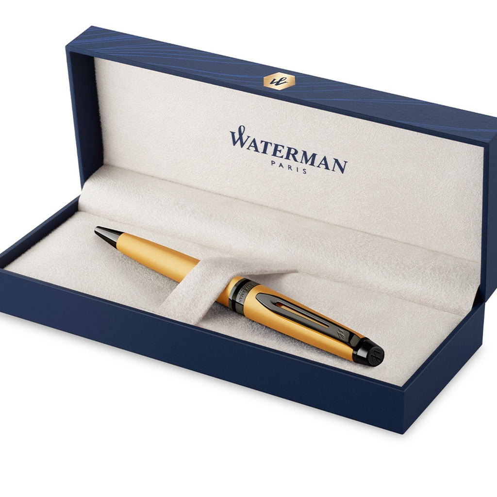 Die goldene Farbe, ruthenierte Zierelemente und ein Modern Classic Design sind Hauptmerkmale des Waterman Expert Metallic Special Edition Kugelschreibers.
